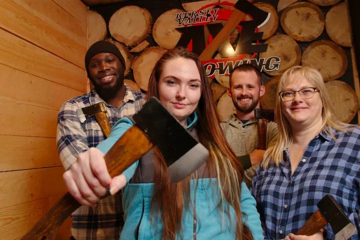 Go head to head or split into teams! Compete in a truly out-of-the-office experience of throwing axes of various weights and sizes in a controlled environment with your axepert guide. Our Kersey Valley Attractions Axe Throwing is an incredibly fun and safe way to make memories with co-workers, friends, and family in a team-building environment.
